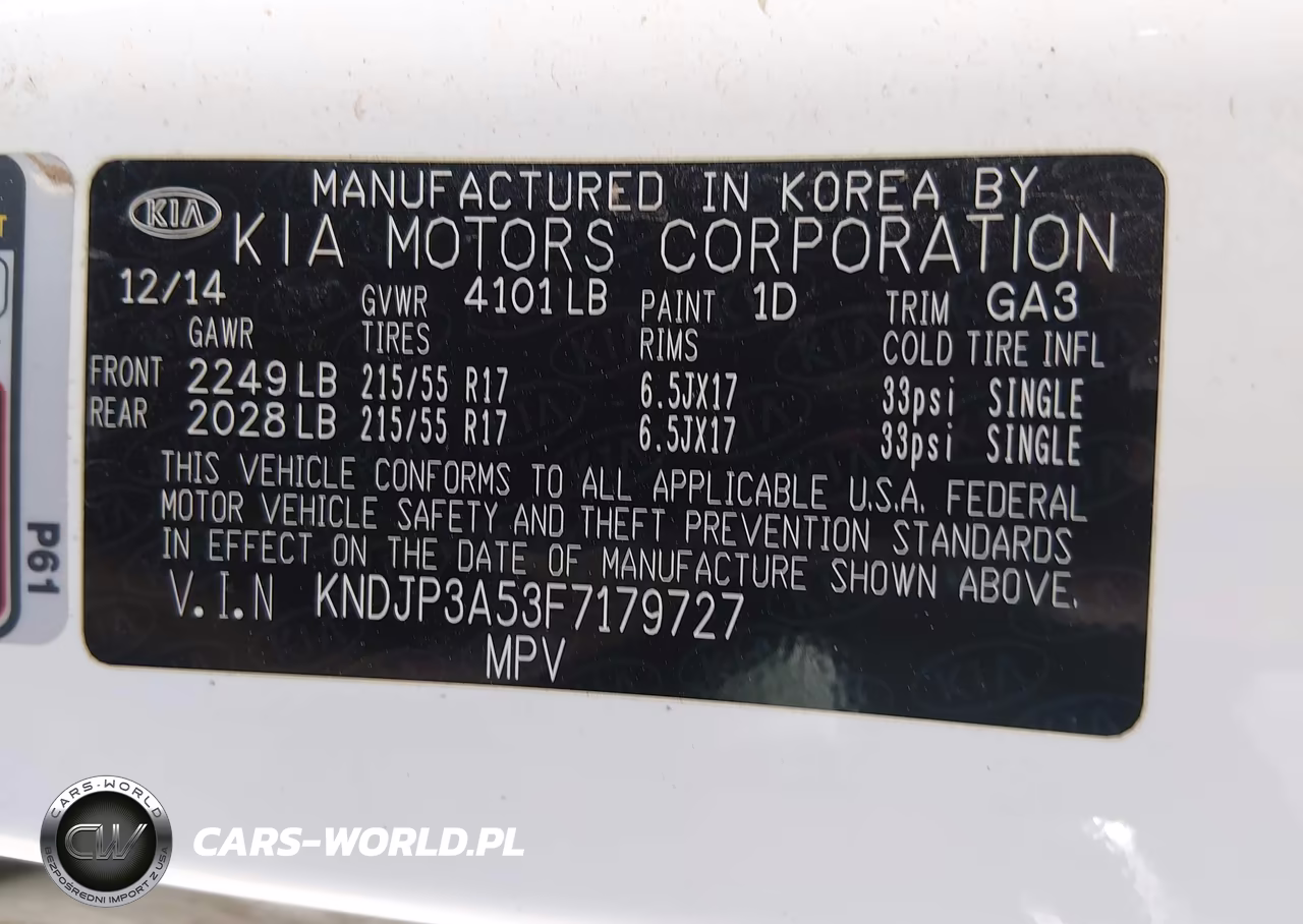 IAAI Nr: I-44858911 VIN: KNDJP3A53F7179727 Port: Los Angeles, CA