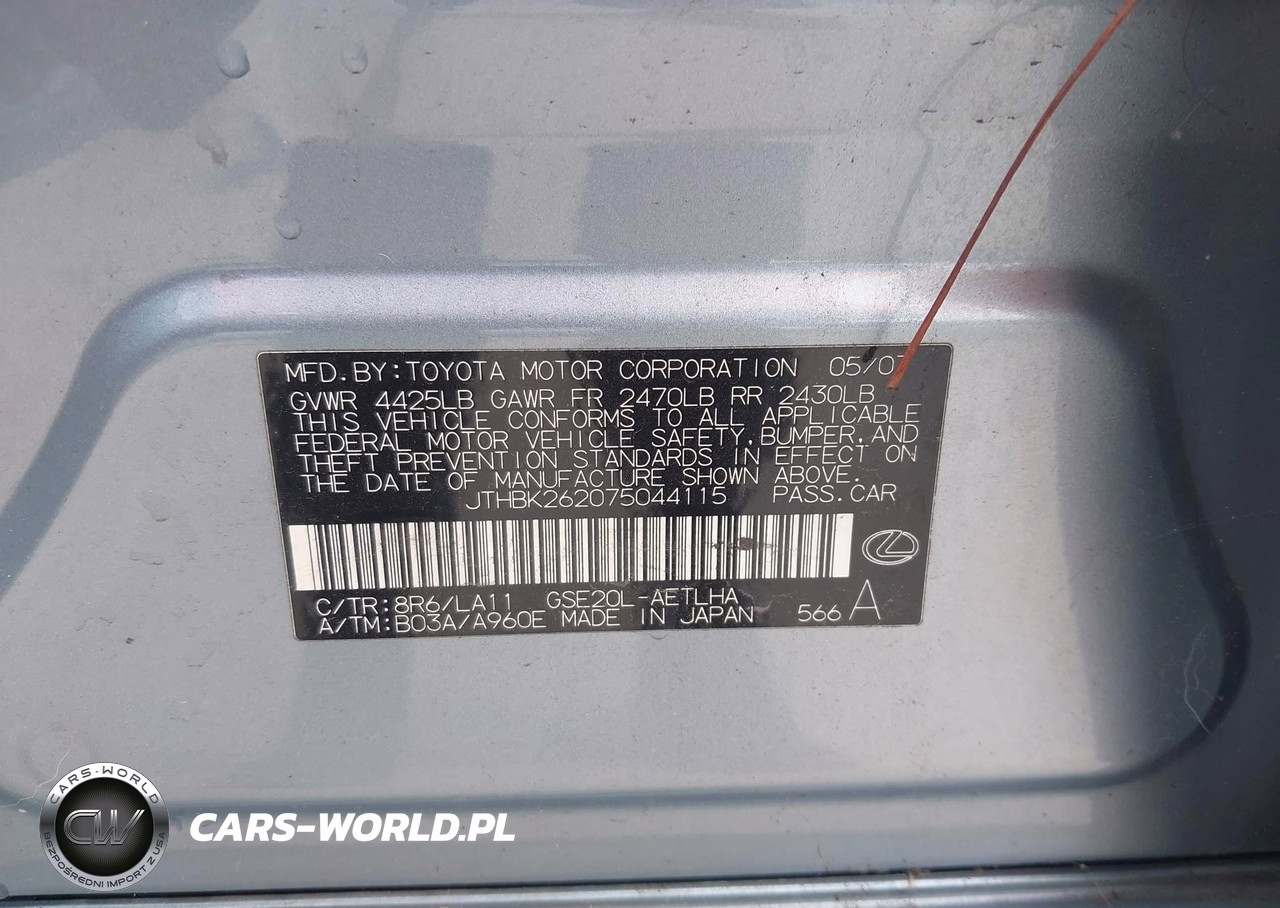 IAAI Nr: I-44858960 VIN: JTHBK262075044115 Port: Los Angeles, CA