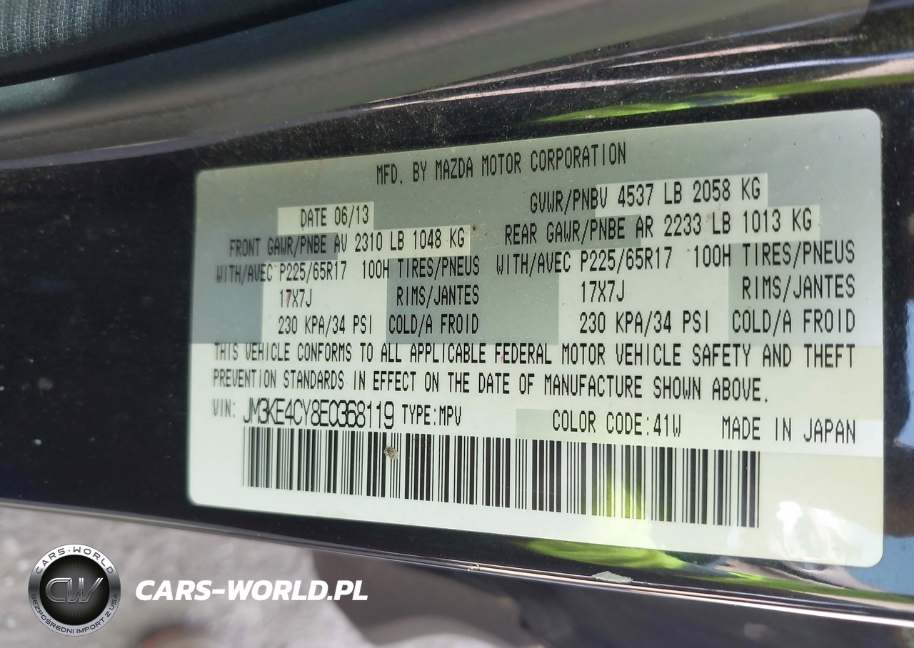 IAAI Nr: I-44859046 VIN: JM3KE4CY8E0368119 Port: Elizabeth, NJ