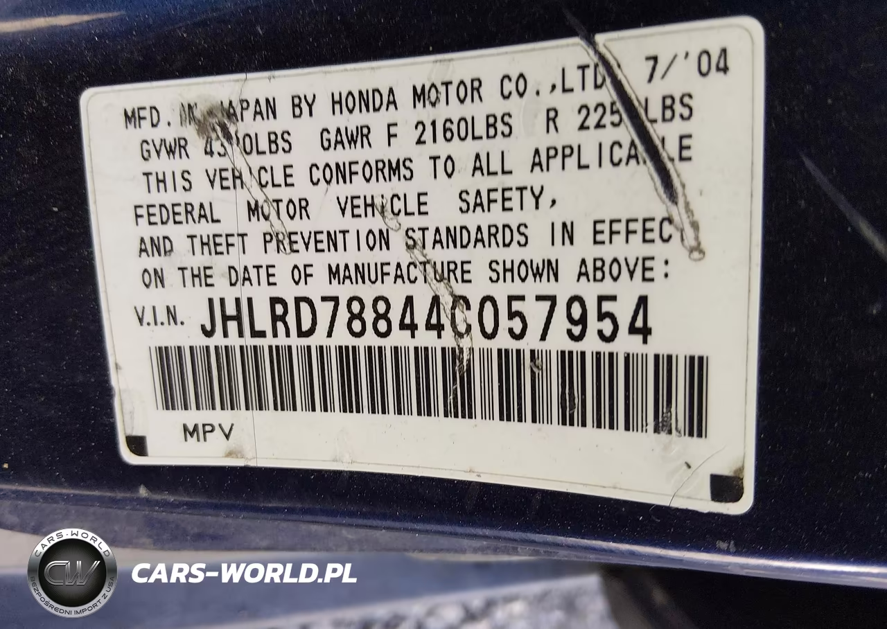 IAAI Nr: I-44859079 VIN: JHLRD78844C057954 Port: Los Angeles, CA