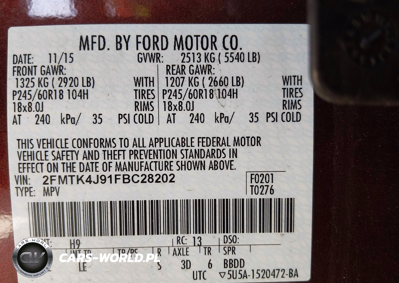 IAAI Nr: I-44859653 VIN: 2FMTK4J91FBC28202 Port: Savannah, GA