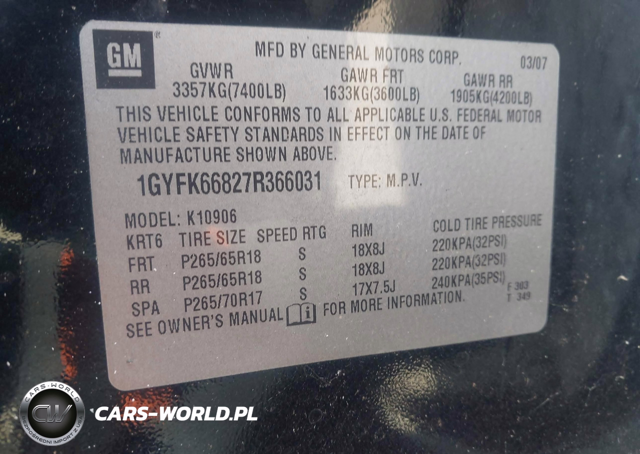 IAAI Nr: I-44859976 VIN: 1GYFK66827R366031 Port: Savannah, GA