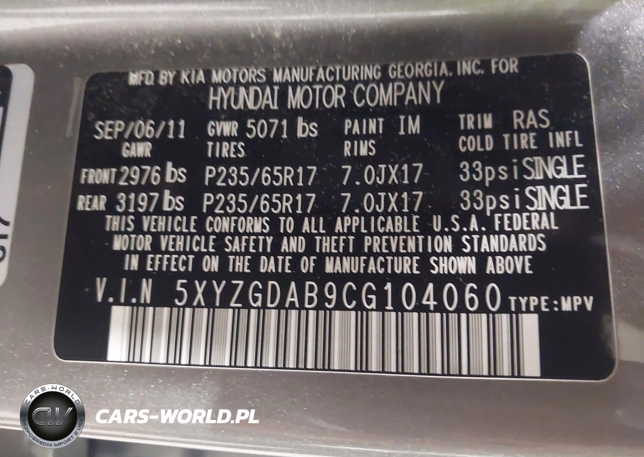 IAAI Nr: I-44861768 VIN: 5XYZGDAB9CG104060 Port: Elizabeth, NJ