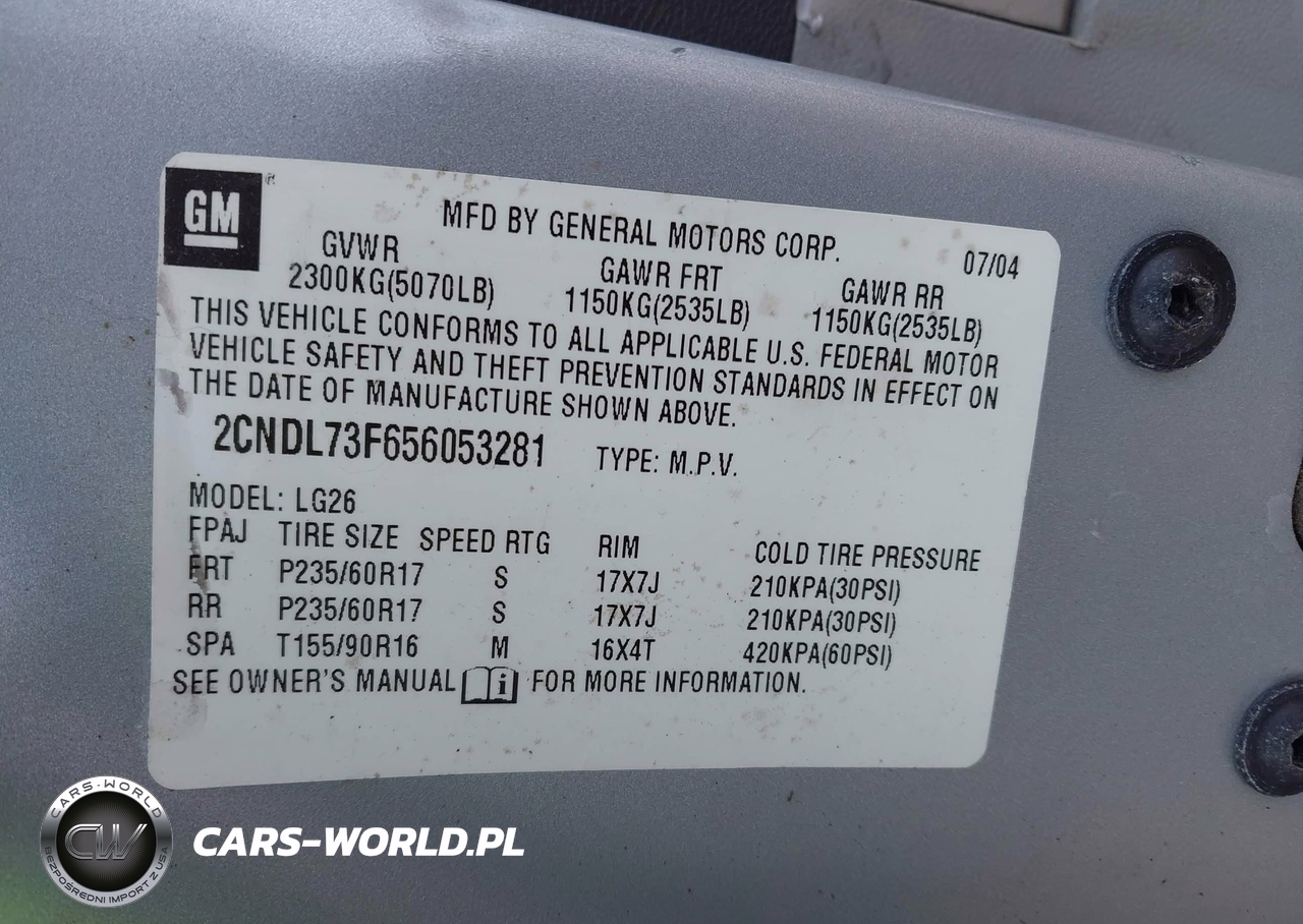 IAAI Nr: I-44862170 VIN: 2CNDL73F656053281 Port: Indianapolis, IN