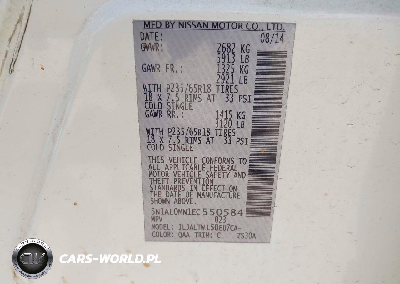 IAAI Nr: I-44862705 VIN: 5N1AL0MN1EC550584 Port: Savannah, GA