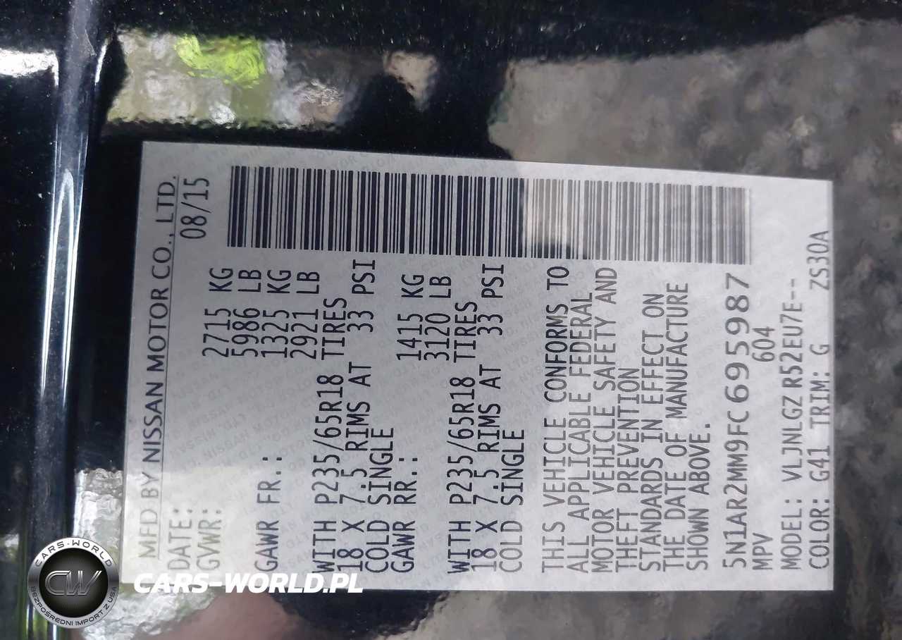 IAAI Nr: I-44863551 VIN: 5N1AR2MM9FC695987 Port: Elizabeth, NJ