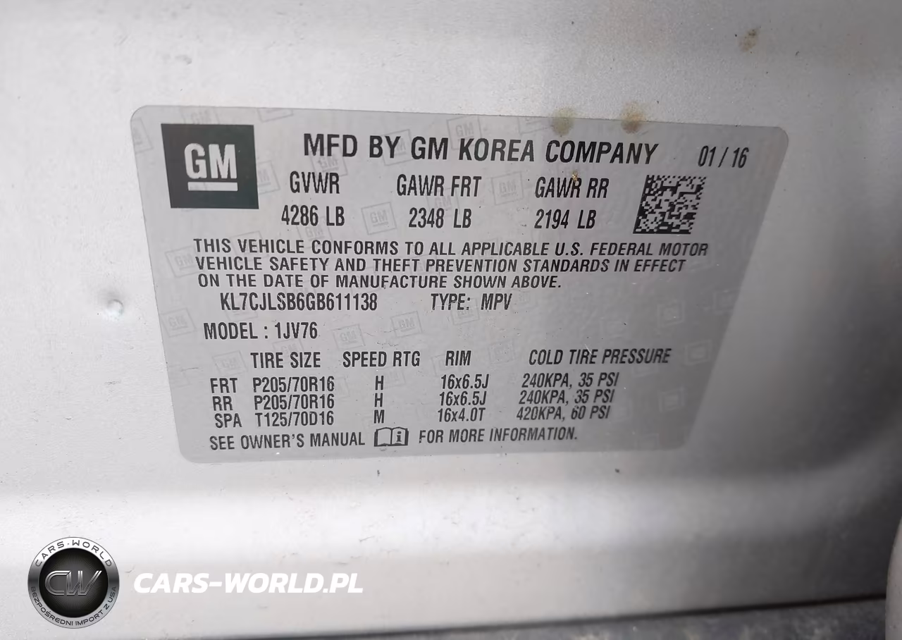 IAAI Nr: I-44864177 VIN: KL7CJLSB6GB611138 Port: Elizabeth, NJ