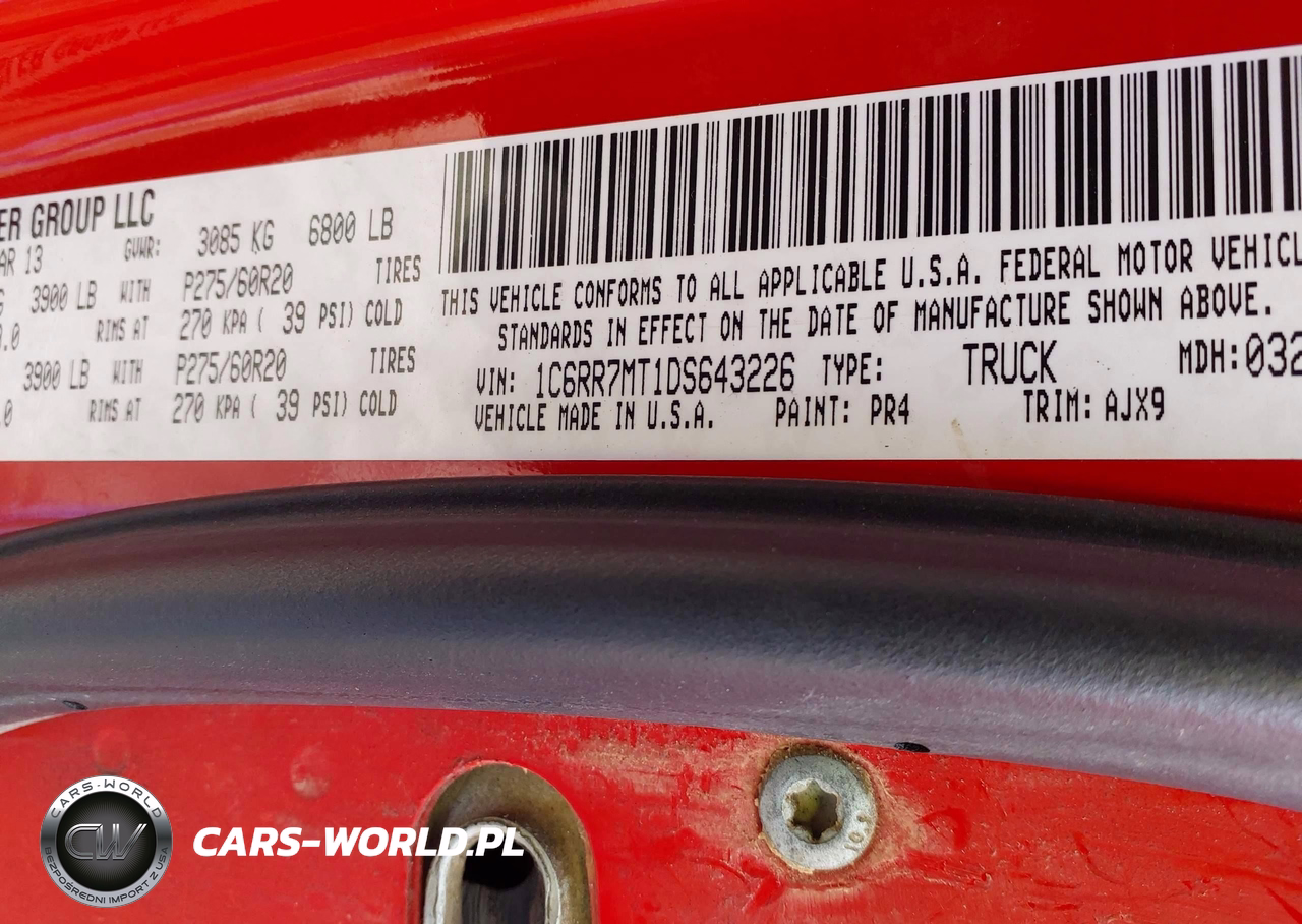 IAAI Nr: I-44865123 VIN: 1C6RR7MT1DS643226 Port: Indianapolis, IN