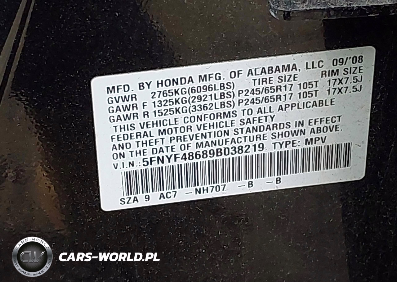 IAAI Nr: I-44865362 VIN: 5FNYF48689B038219 Port: Elizabeth, NJ