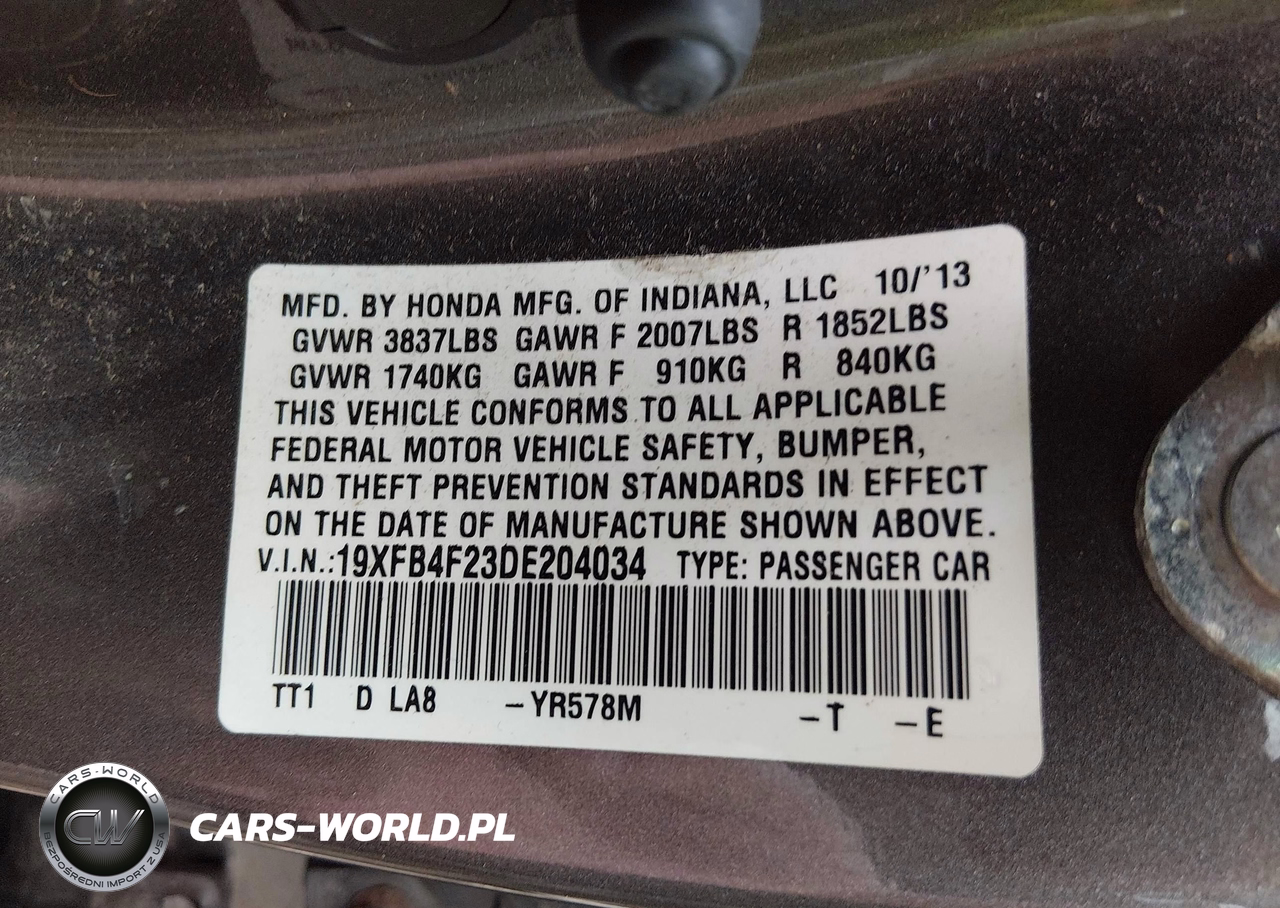 IAAI Nr: I-44866253 VIN: 19XFB4F23DE204034 Port: Indianapolis, IN