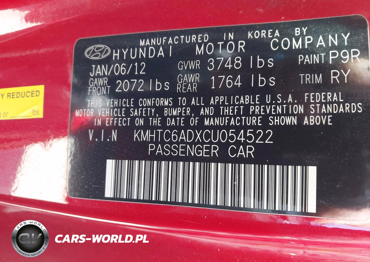 IAAI Nr: I-44866832 VIN: KMHTC6ADXCU054522 Port: Los Angeles, CA