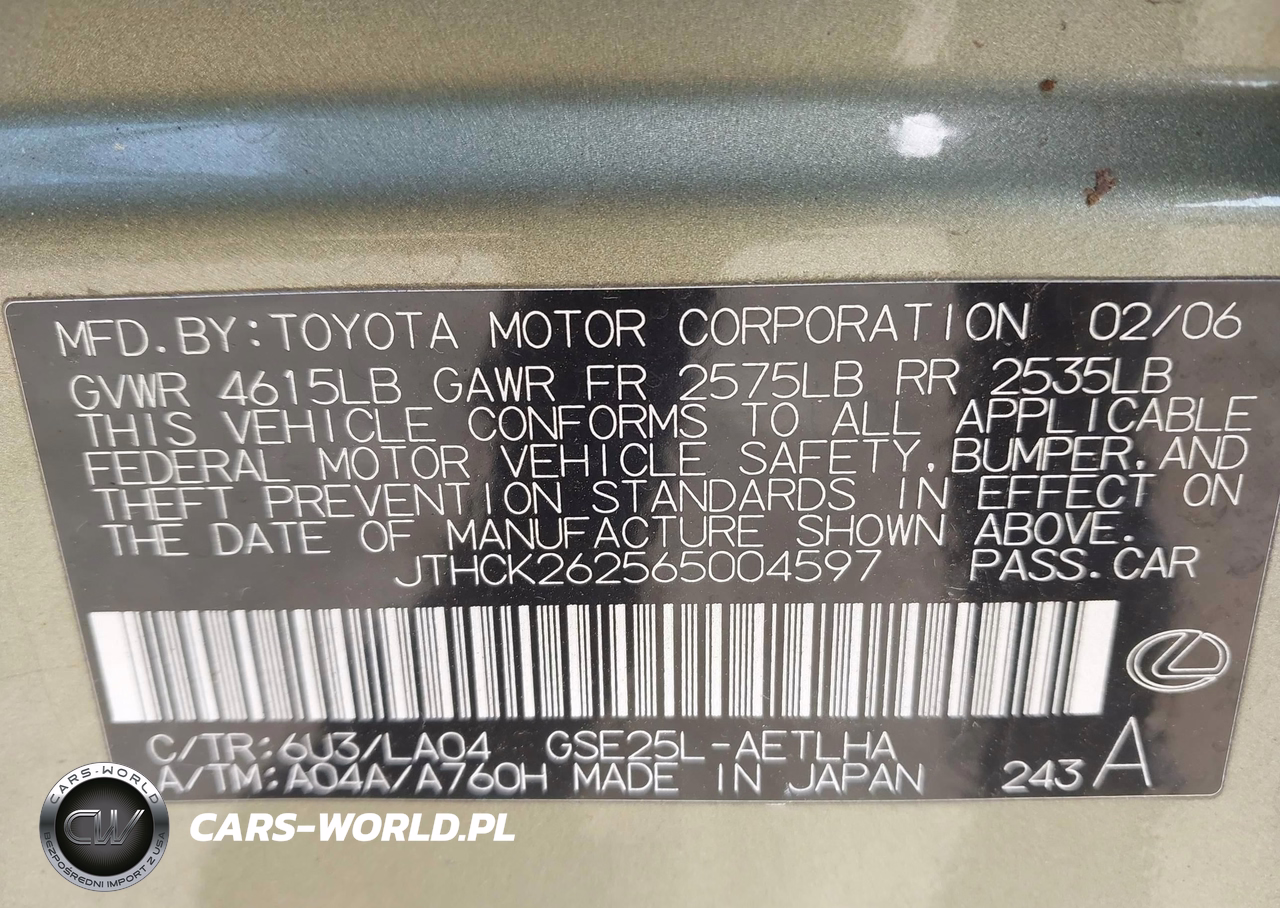IAAI Nr: I-44867461 VIN: JTHCK262565004597 Port: Elizabeth, NJ