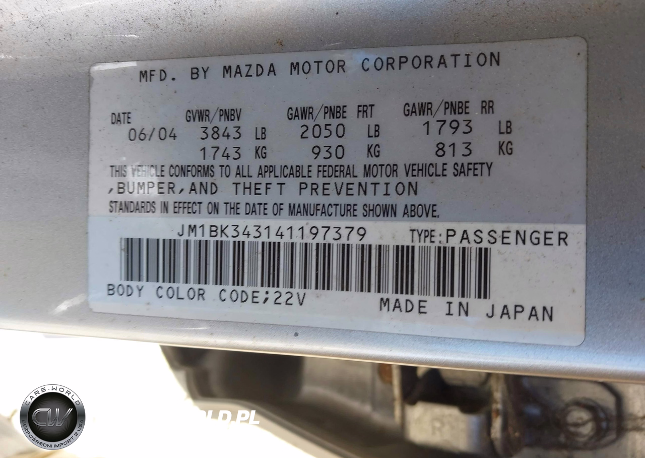IAAI Nr: I-44867535 VIN: JM1BK343141197379 Port: Los Angeles, CA