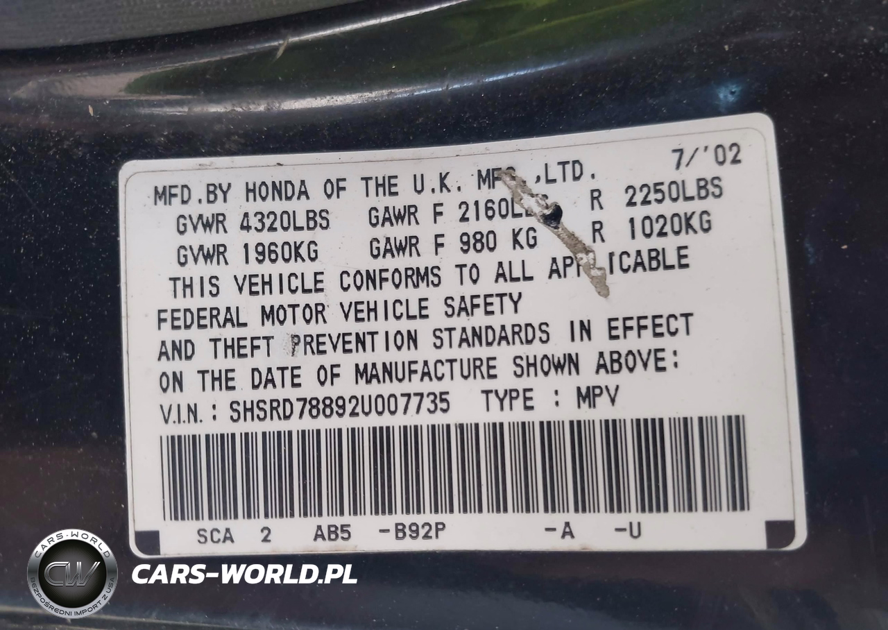 IAAI Nr: I-44867754 VIN: SHSRD78892U007735 Port: Los Angeles, CA