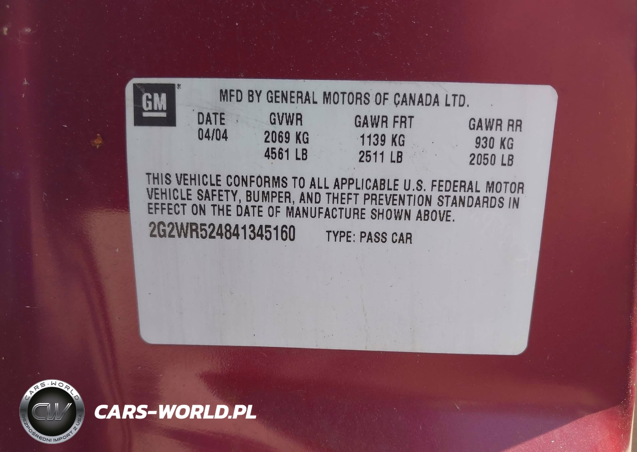 IAAI Nr: I-44868068 VIN: 2G2WR524841345160 Port: Elizabeth, NJ