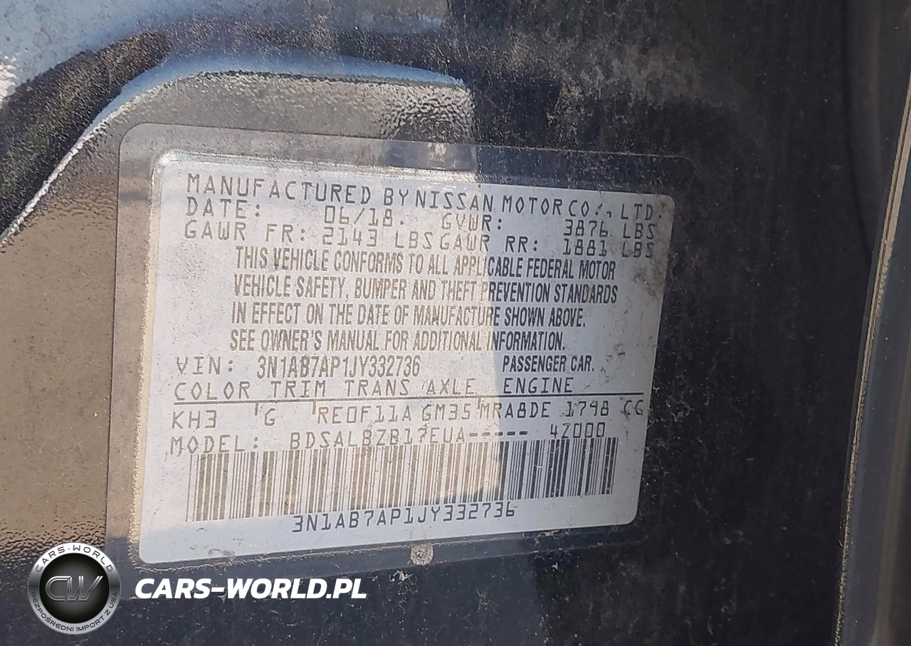 IAAI Nr: I-44869049 VIN: 3N1AB7AP1JY332736 Port: Savannah, GA