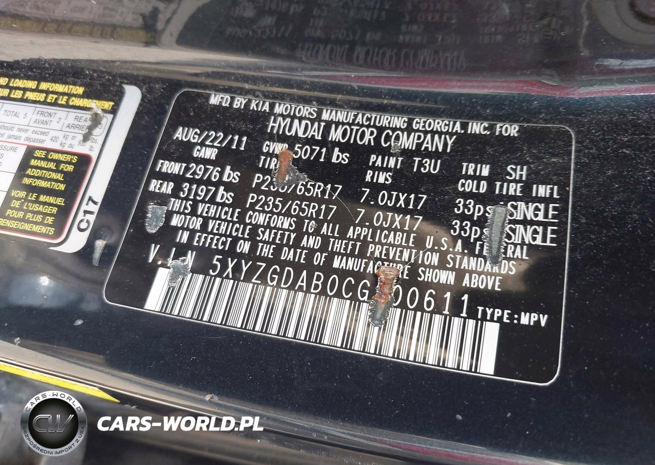 IAAI Nr: I-44872136 VIN: 5XYZGDAB0CG100611 Port: Elizabeth, NJ