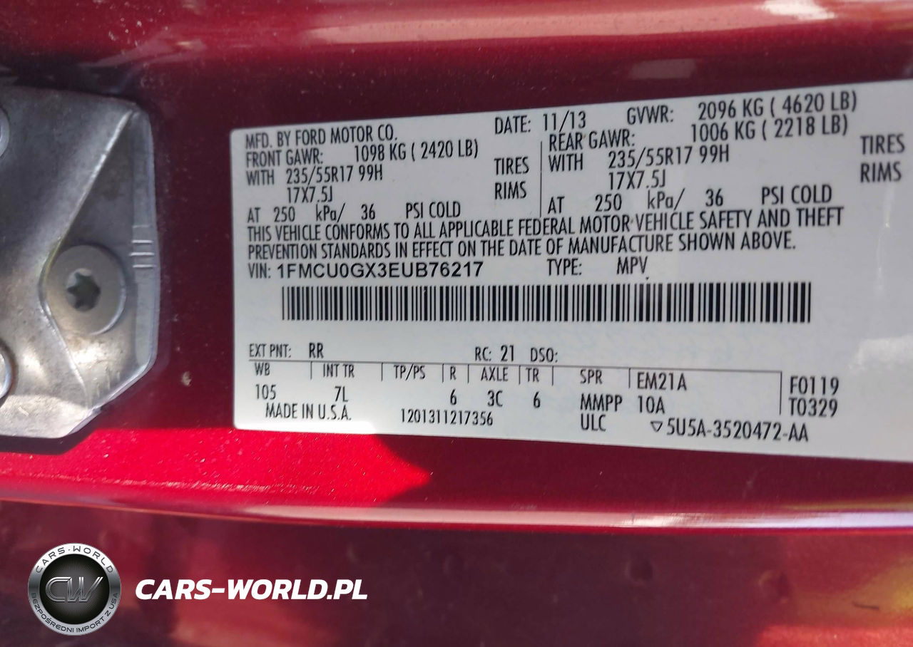 IAAI Nr: I-44873013 VIN: 1FMCU0GX3EUB76217 Port: Savannah, GA