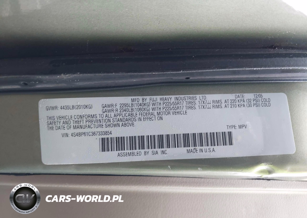 IAAI Nr: I-44874277 VIN: 4S4BP61C367333854 Port: Los Angeles, CA