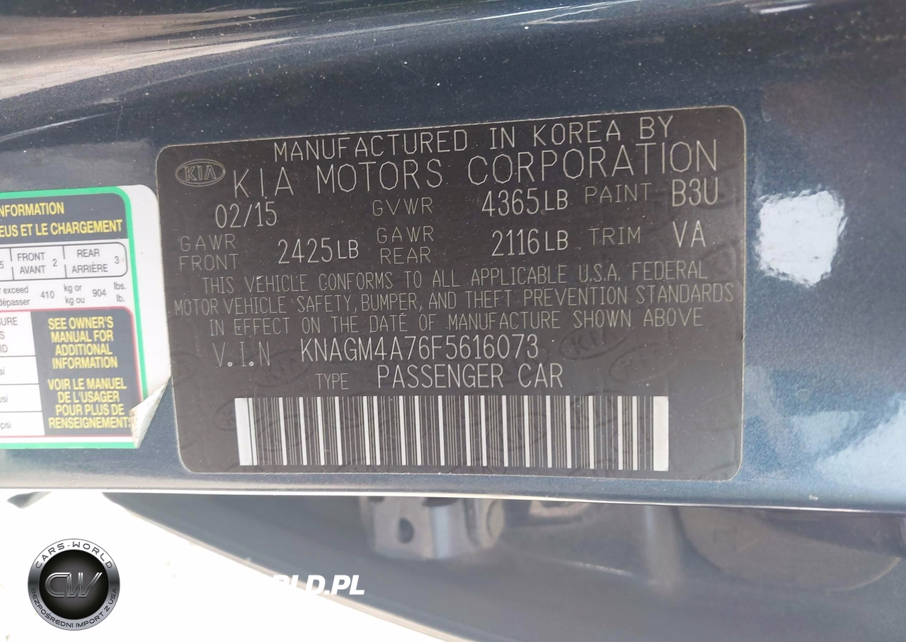 IAAI Nr: I-44876141 VIN: KNAGM4A76F5616073 Port: Savannah, GA