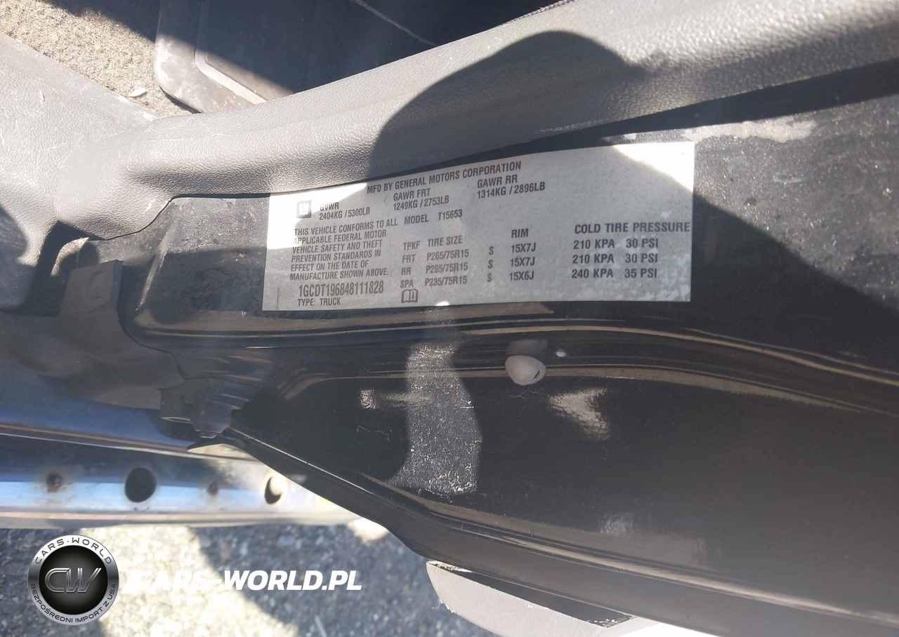 IAAI Nr: I-44876191 VIN: 1GCDT196848111828 Port: Elizabeth, NJ