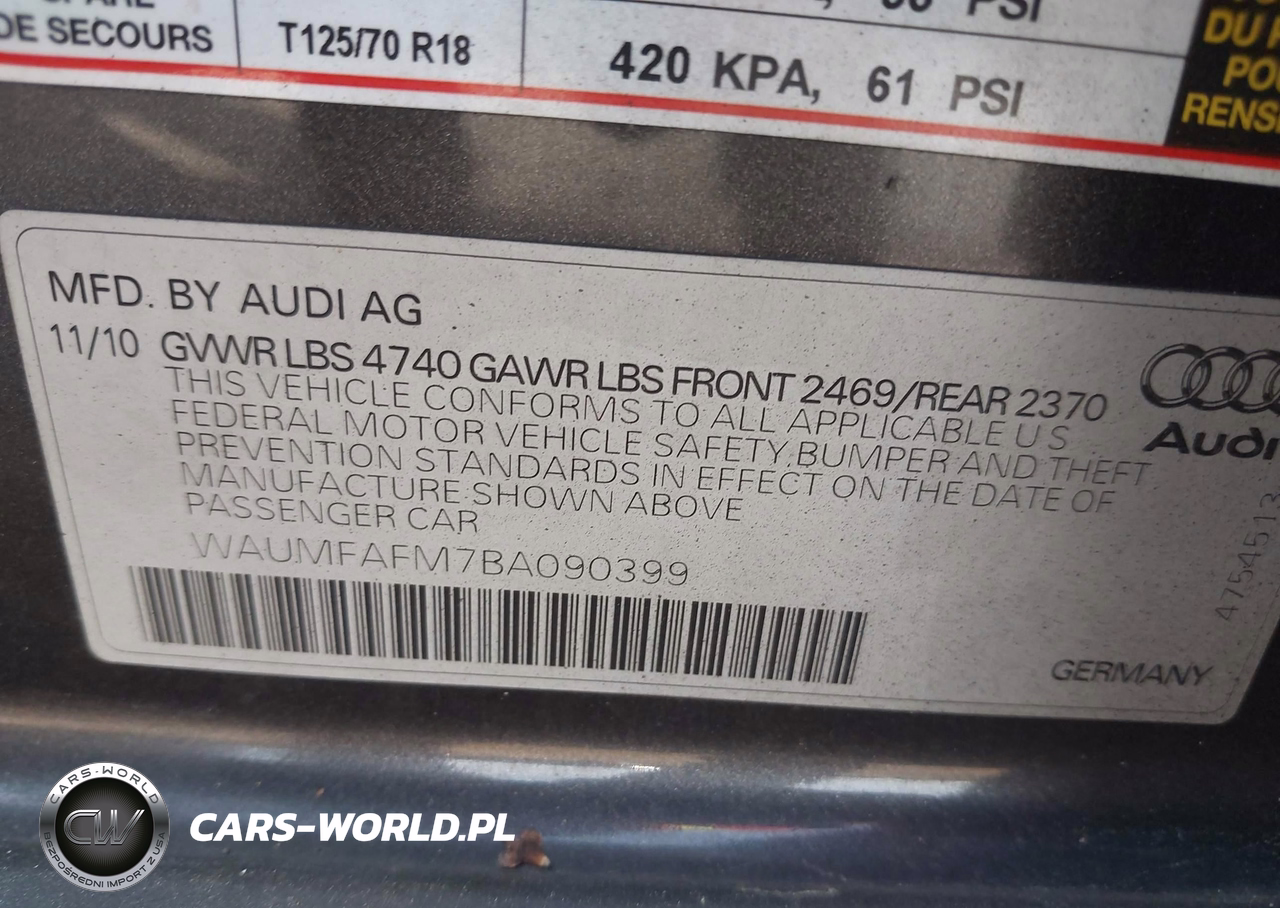 IAAI Nr: I-44876965 VIN: WAUMFAFM7BA090399 Port: Elizabeth, NJ