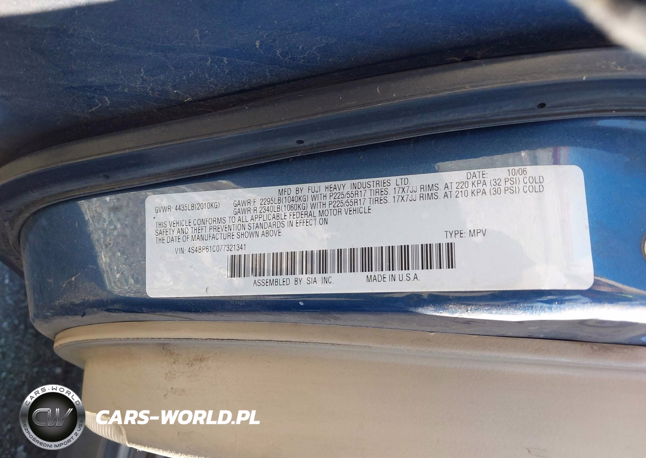 IAAI Nr: I-44878099 VIN: 4S4BP61C077321341 Port: Los Angeles, CA