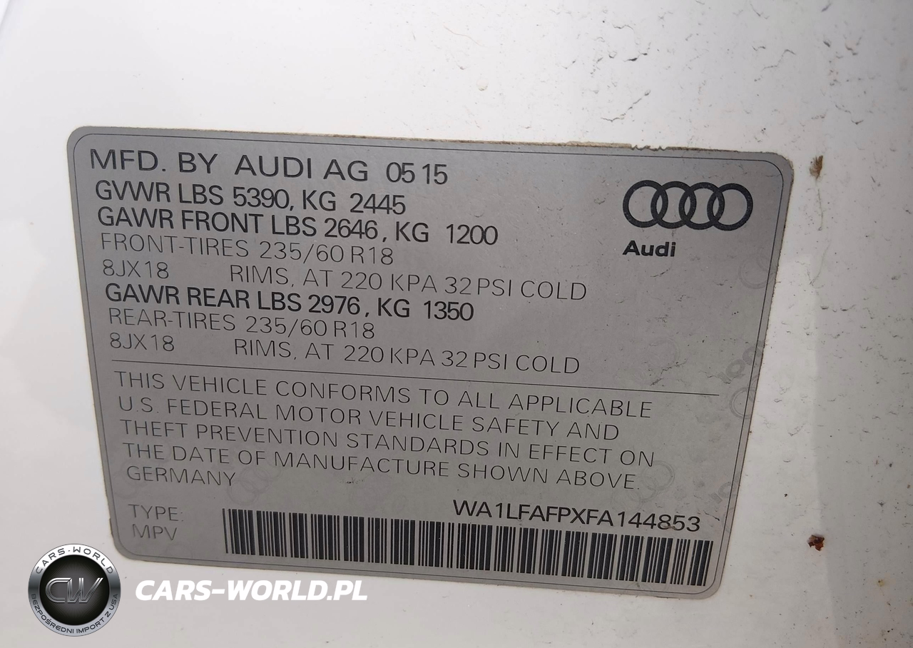 IAAI Nr: I-44878217 VIN: WA1LFAFPXFA144853 Port: Elizabeth, NJ