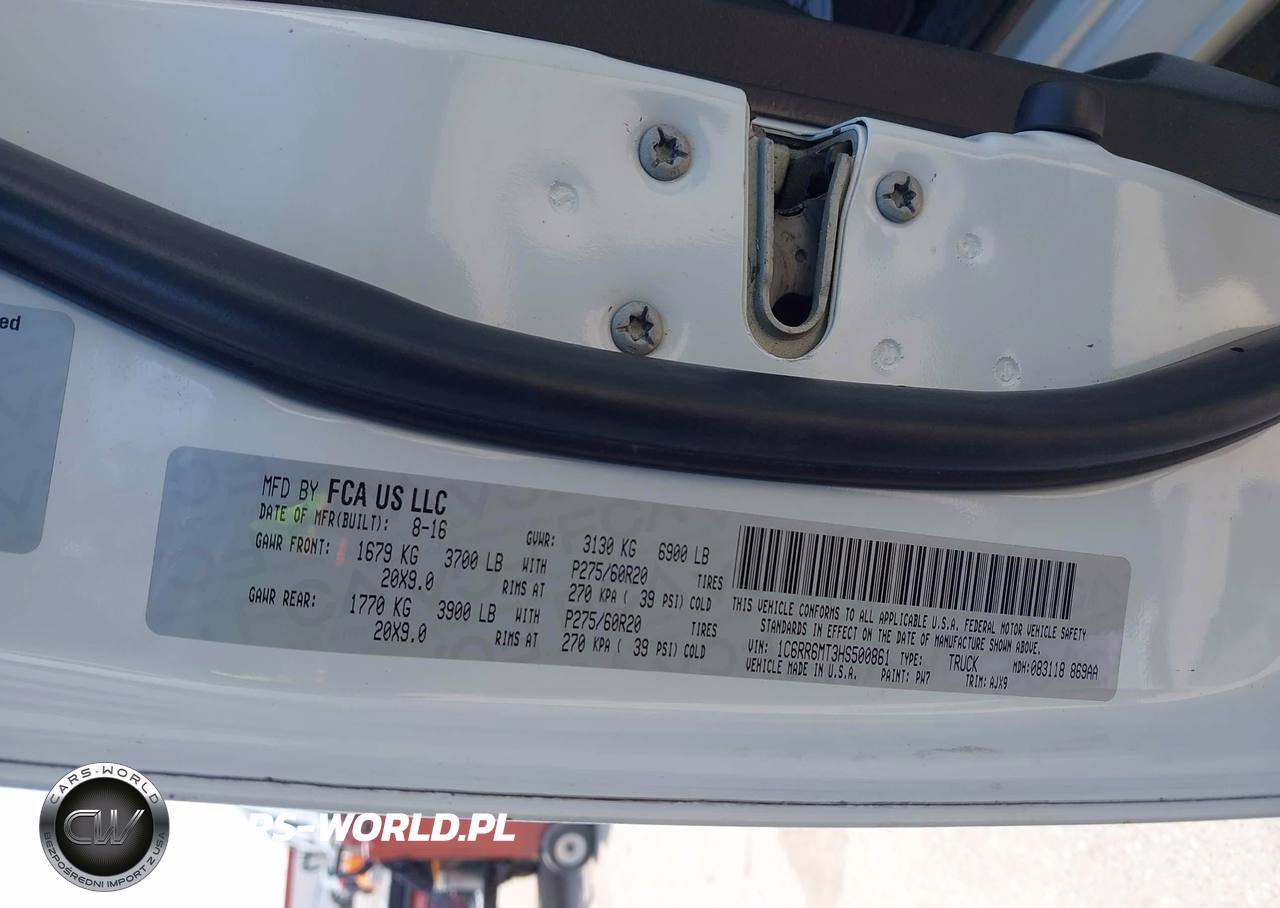 IAAI Nr: I-44878446 VIN: 1C6RR6MT3HS500861 Port: Houston, TX