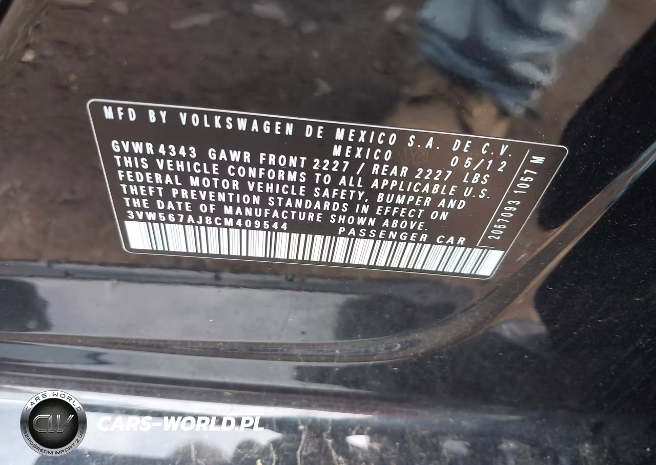 IAAI Nr: I-44878745 VIN: 3VW567AJ8CM409544 Port: Elizabeth, NJ