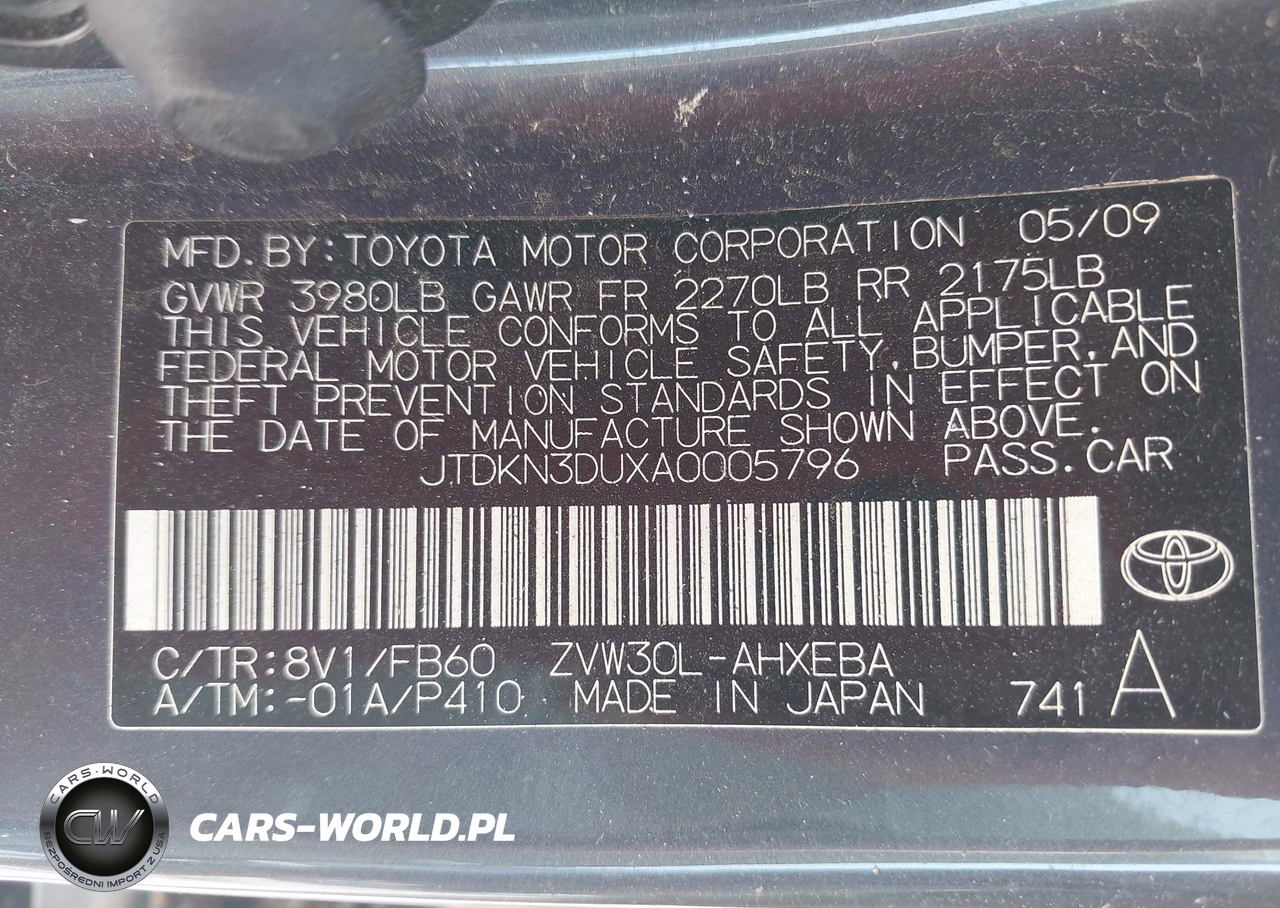 IAAI Nr: I-44879188 VIN: JTDKN3DUXA0005796 Port: Savannah, GA