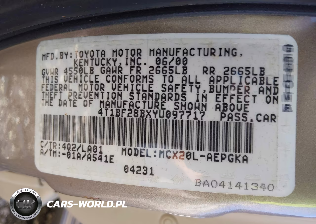 IAAI Nr: I-44879631 VIN: 4T1BF28BXYU097717 Port: Houston, TX