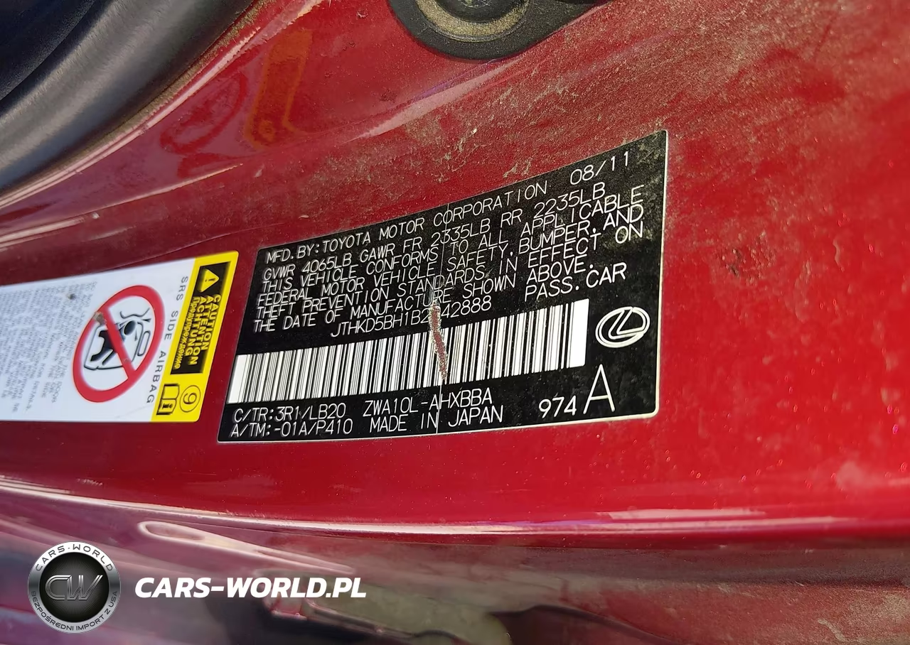 IAAI Nr: I-44880488 VIN: JTHKD5BH1B2042888 Port: Houston, TX