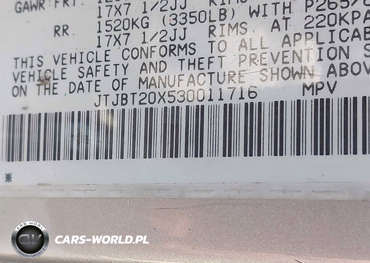 IAAI Nr: I-44882757 VIN: JTJBT20X530011716 Port: Elizabeth, NJ