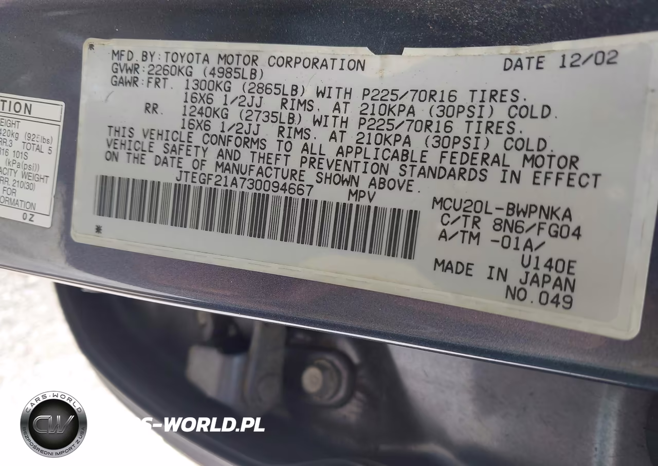 IAAI Nr: I-44882820 VIN: JTEGF21A730094667 Port: Houston, TX