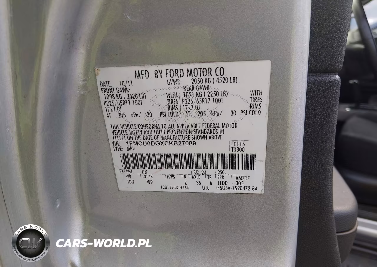 IAAI Nr: I-44884431 VIN: 1FMCU0DGXCKB27089 Port: Savannah, GA