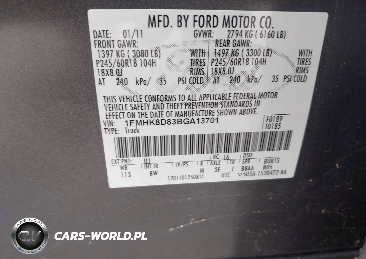 IAAI Nr: I-44885237 VIN: 1FMHK8D83BGA13701 Port: Houston, TX