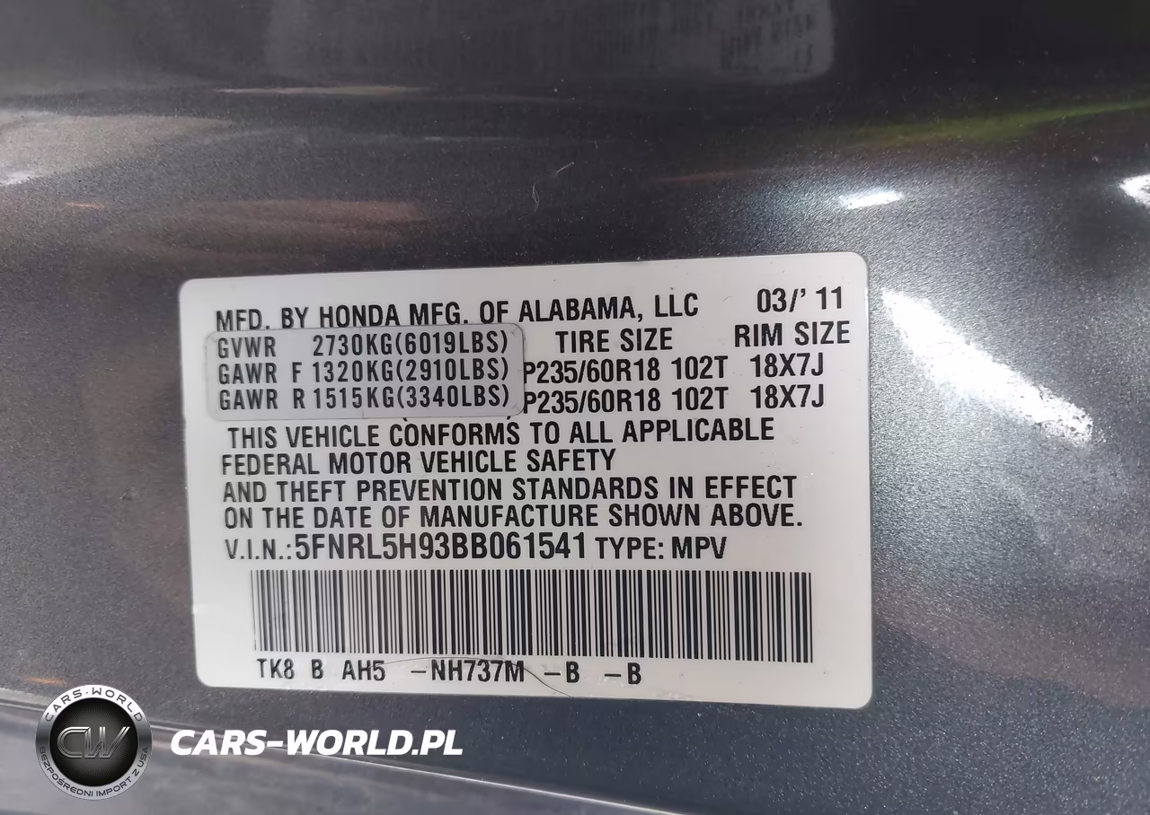 IAAI Nr: I-44885430 VIN: 5FNRL5H93BB061541 Port: Indianapolis, IN