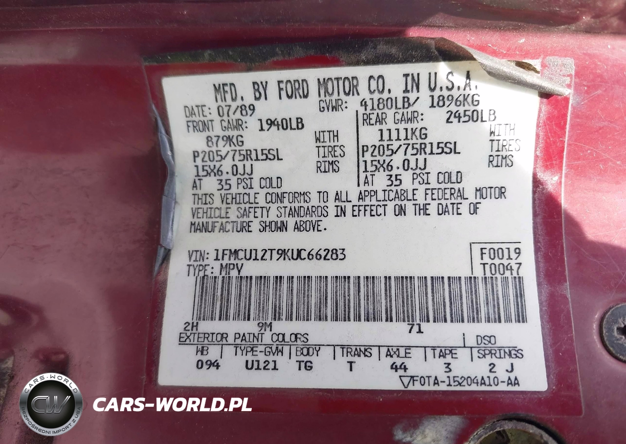 IAAI Nr: I-44886523 VIN: 1FMCU12T9KUC66283 Port: Los Angeles, CA