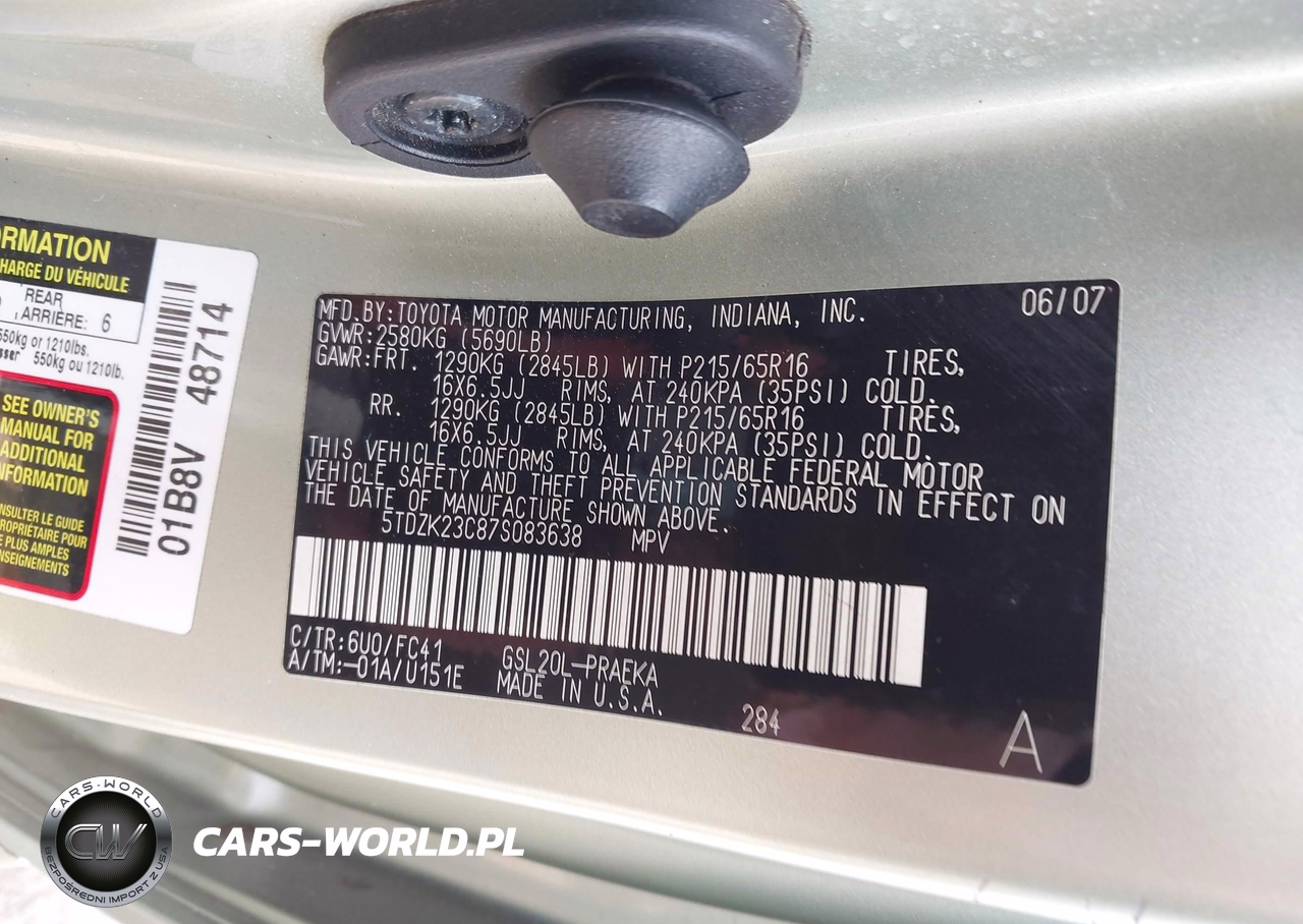 IAAI Nr: I-44886603 VIN: 5TDZK23C87S083638 Port: Elizabeth, NJ