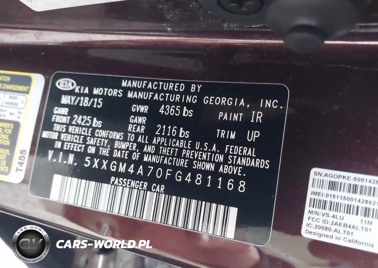 IAAI Nr: I-44888763 VIN: 5XXGM4A70FG481168 Port: Indianapolis, IN