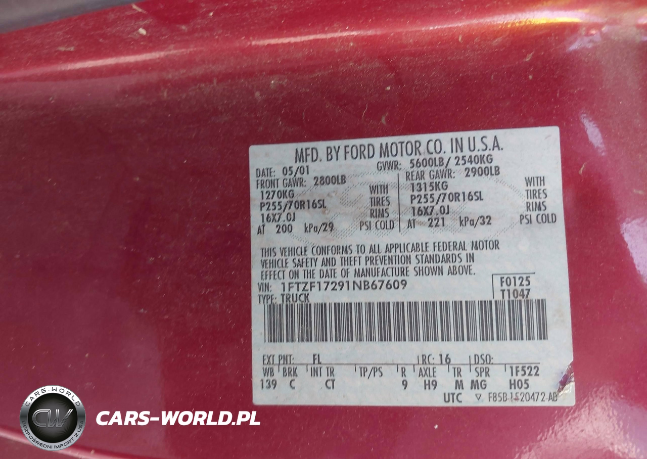 IAAI Nr: I-44889416 VIN: 1FTZF17291NB67609 Port: Elizabeth, NJ