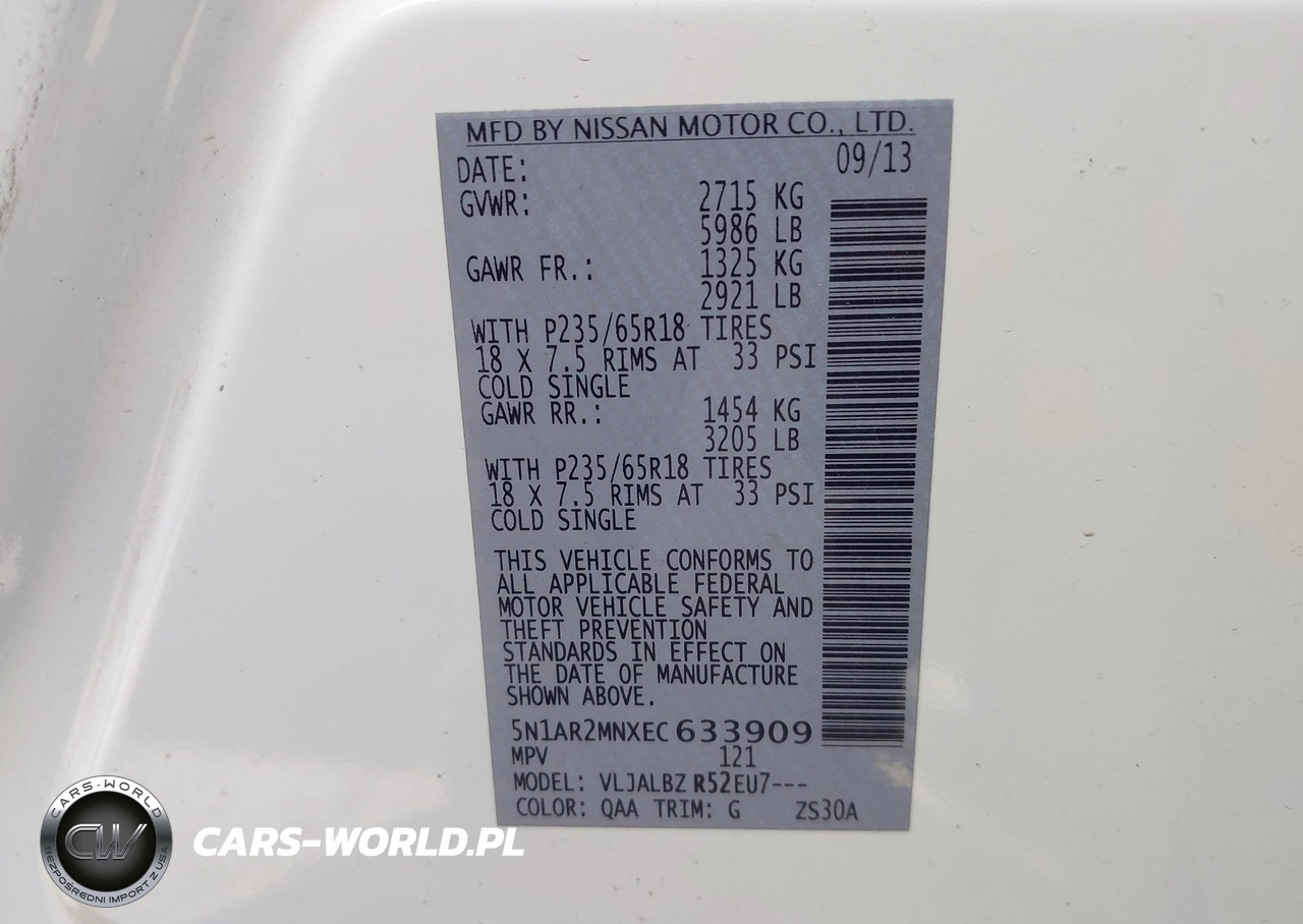 IAAI Nr: I-44889534 VIN: 5N1AR2MNXEC633909 Port: Los Angeles, CA