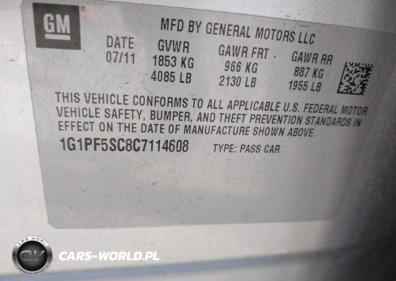 IAAI Nr: I-44890255 VIN: 1G1PF5SC8C7114608 Port: Los Angeles, CA