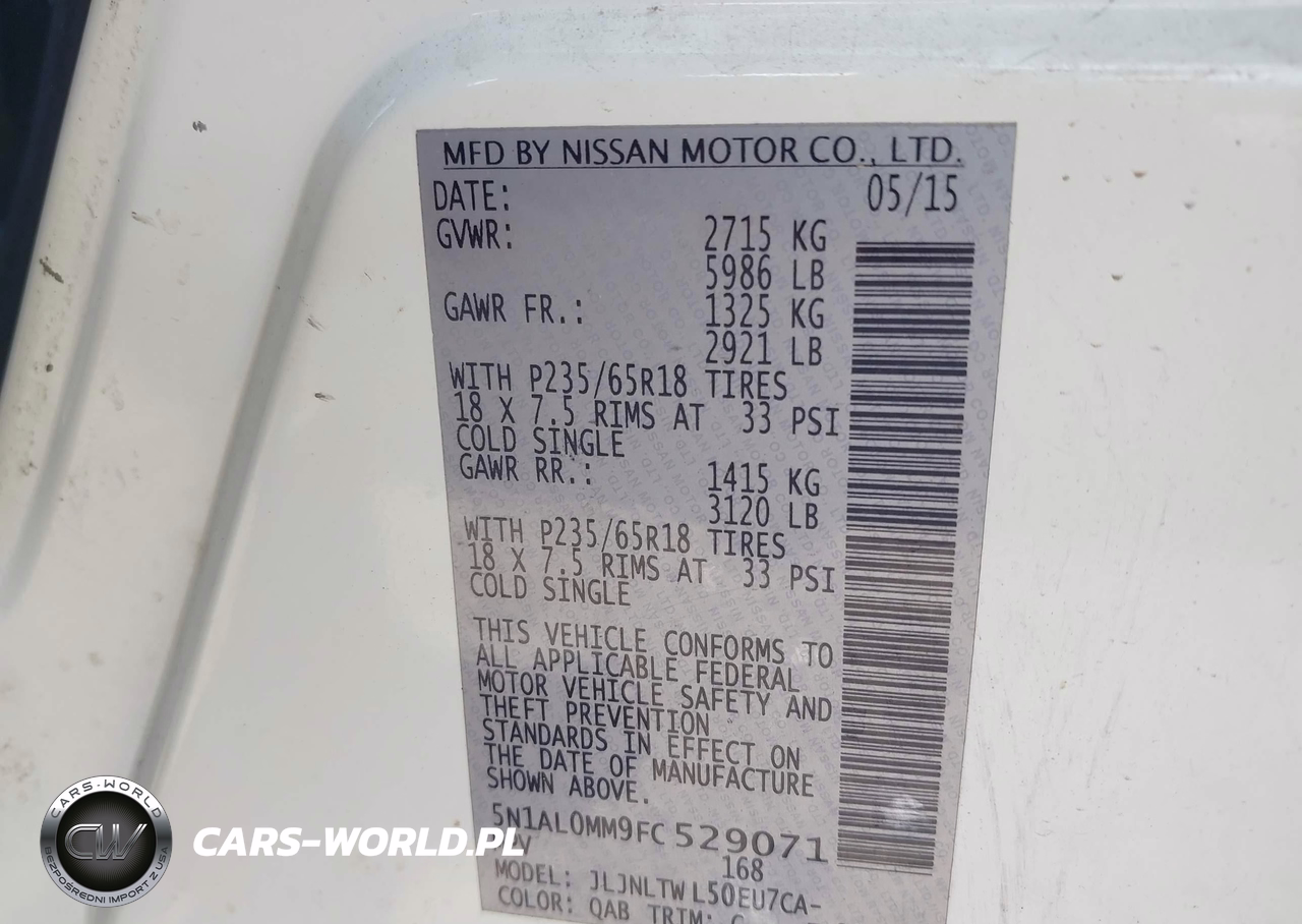 IAAI Nr: I-44890858 VIN: 5N1AL0MM9FC529071 Port: Houston, TX
