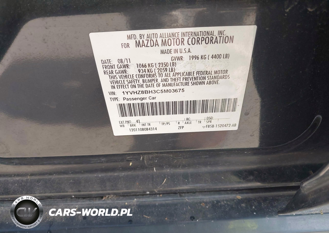 IAAI Nr: I-44891474 VIN: 1YVHZ8BH3C5M03675 Port: Houston, TX