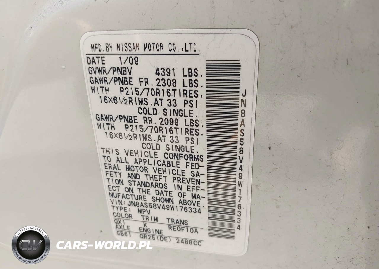 IAAI Nr: I-44891713 VIN: JN8AS58V49W176334 Port: Elizabeth, NJ