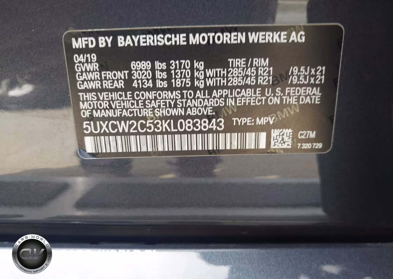 IAAI Nr: I-44893180 VIN: 5UXCW2C53KL083843 Port: Los Angeles, CA