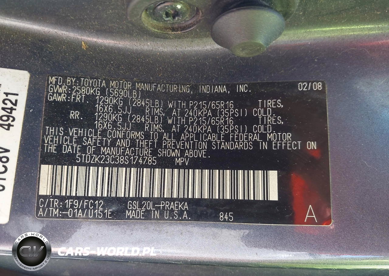 IAAI Nr: I-44893806 VIN: 5TDZK23C38S174785 Port: Elizabeth, NJ