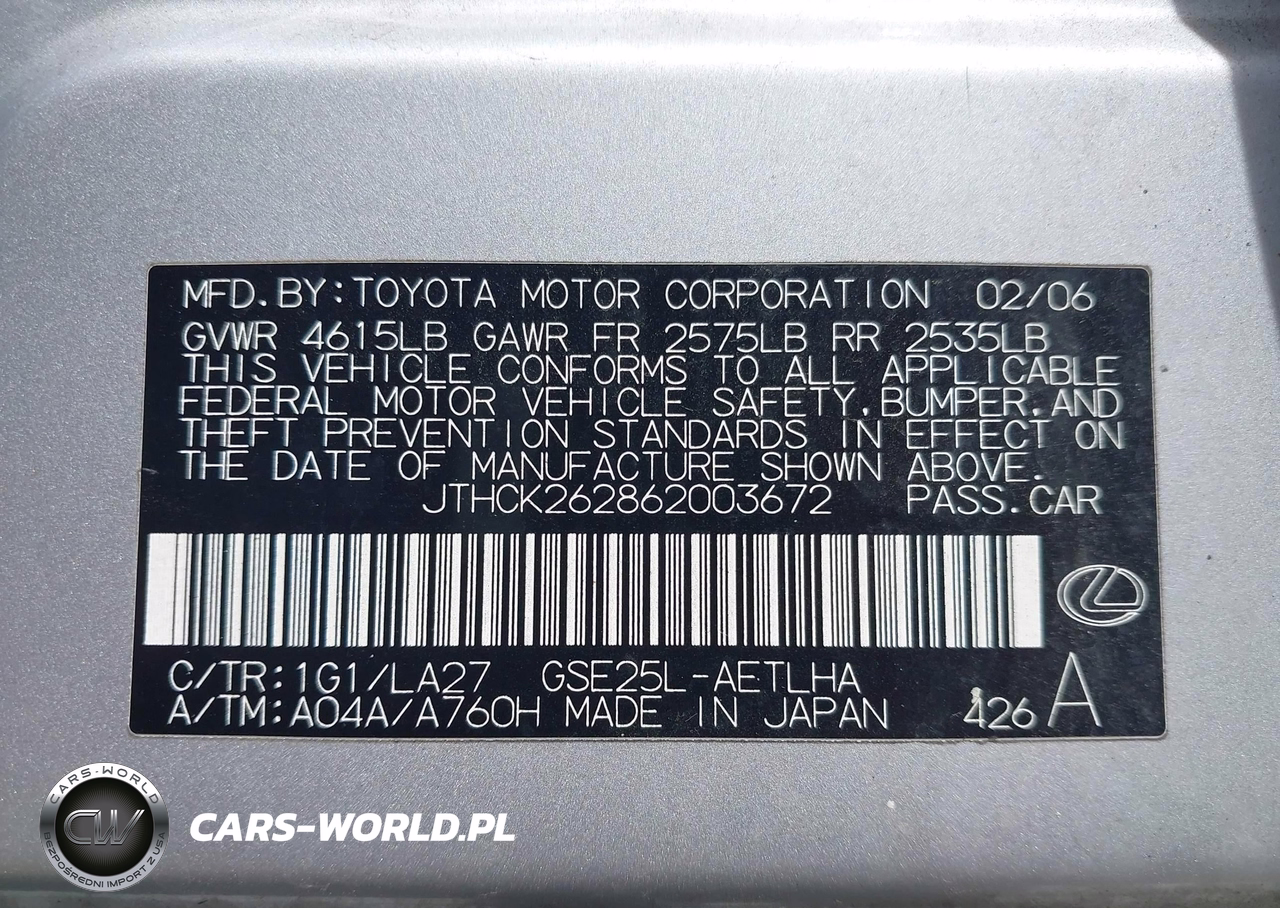 IAAI Nr: I-44897141 VIN: JTHCK262862003672 Port: Indianapolis, IN
